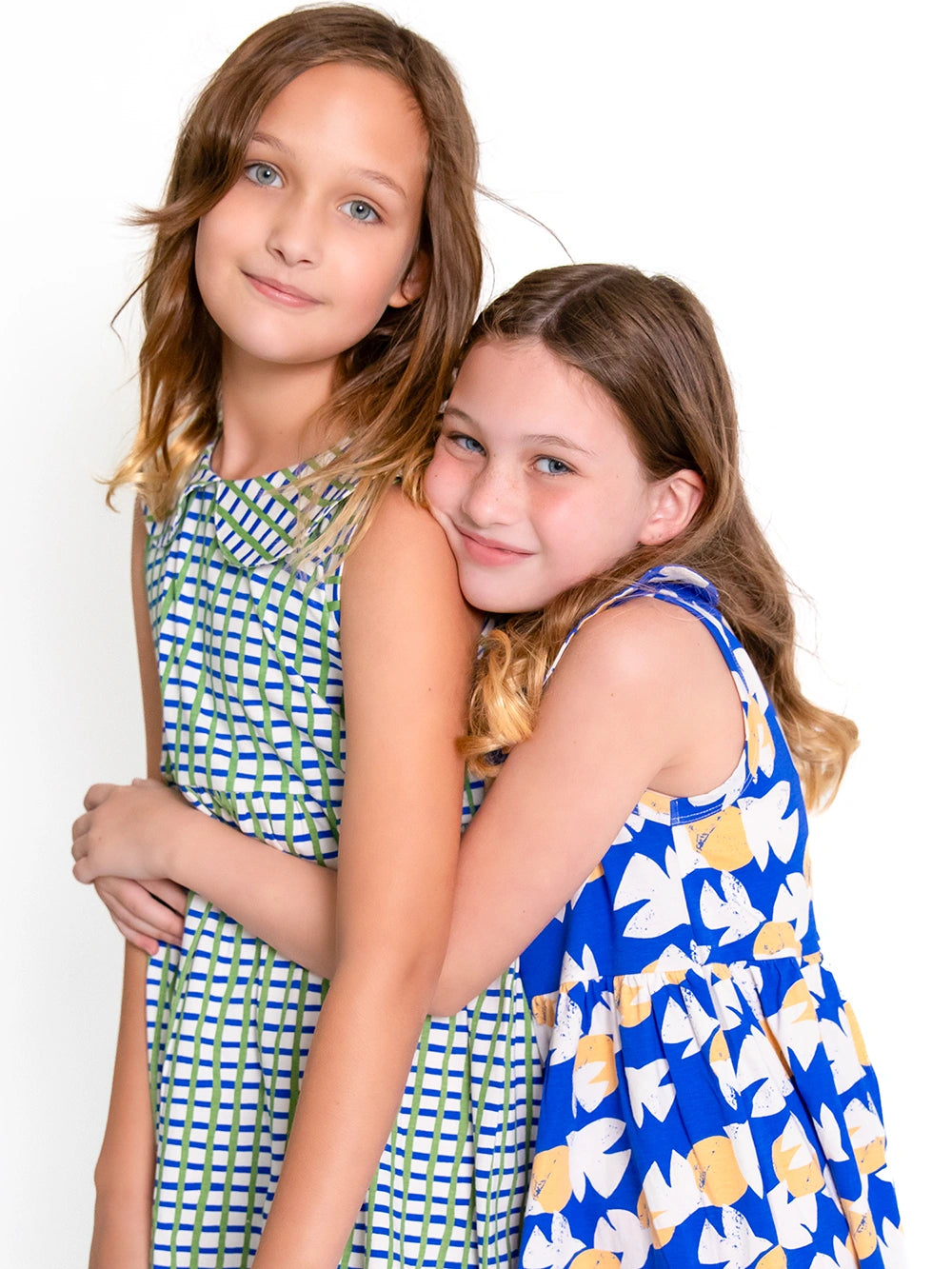 Fit: Girls' Organic Cotton Dress fits true to size. Fitted bodice with a full skirt that hits just below the knee.